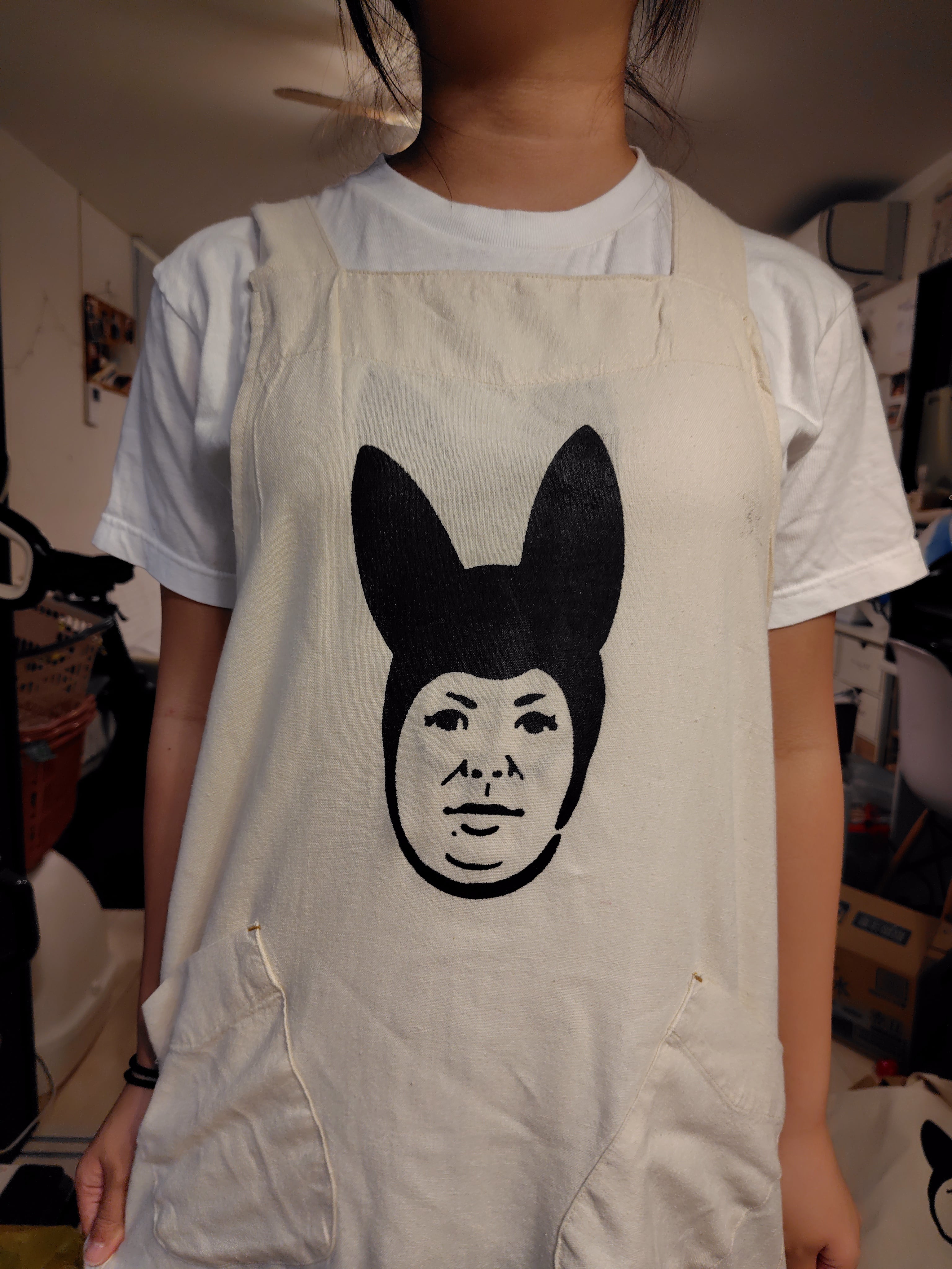 ※全てのエプロンが我々夫婦が手作業でプリントを行っているため、若干の滲みやズレがあってもご愛嬌ということでご了承いただければと存じます。