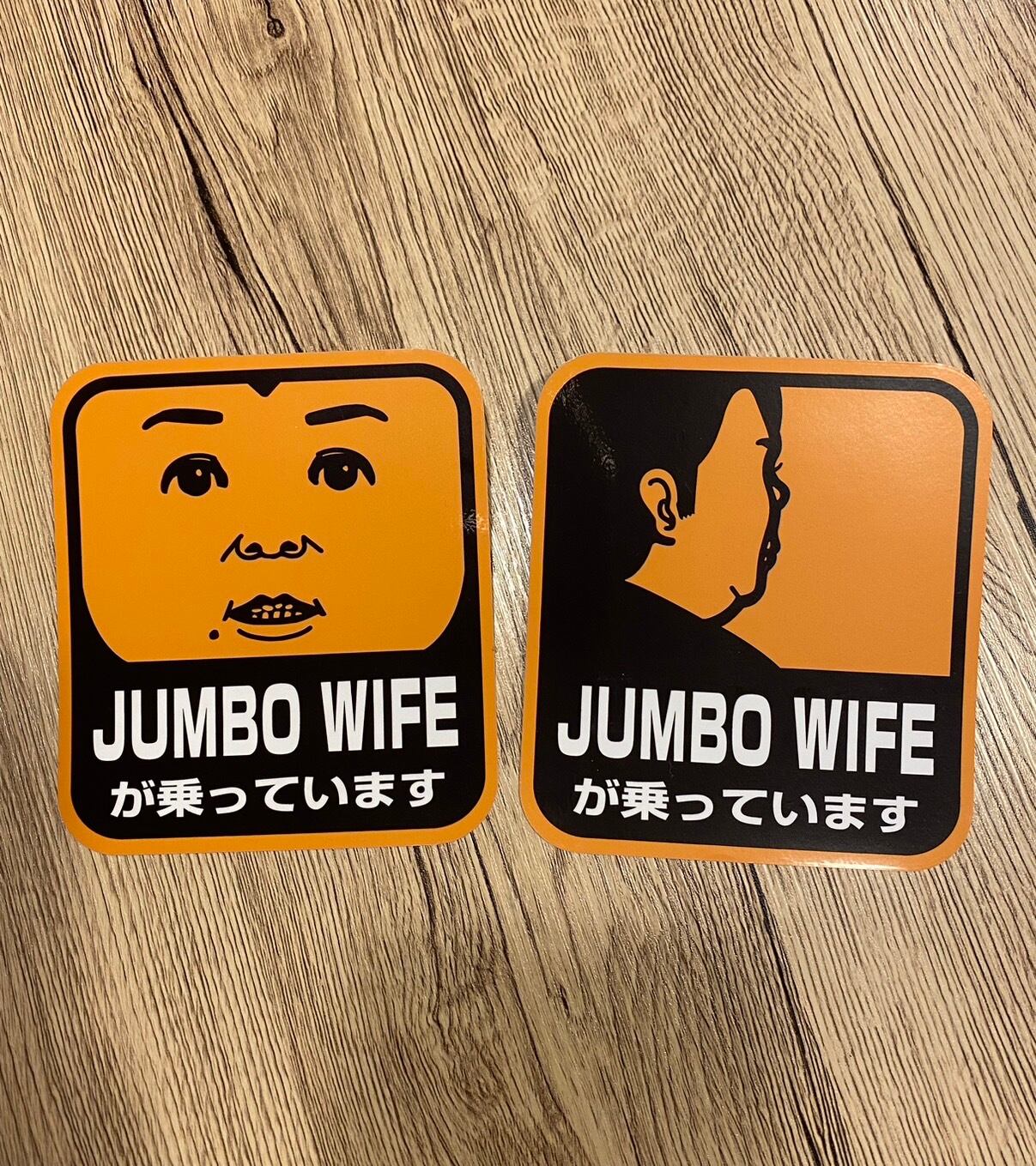 「JUMBO WIFEが乗っていますよ」という注意喚起用のステッカーのセットです。
